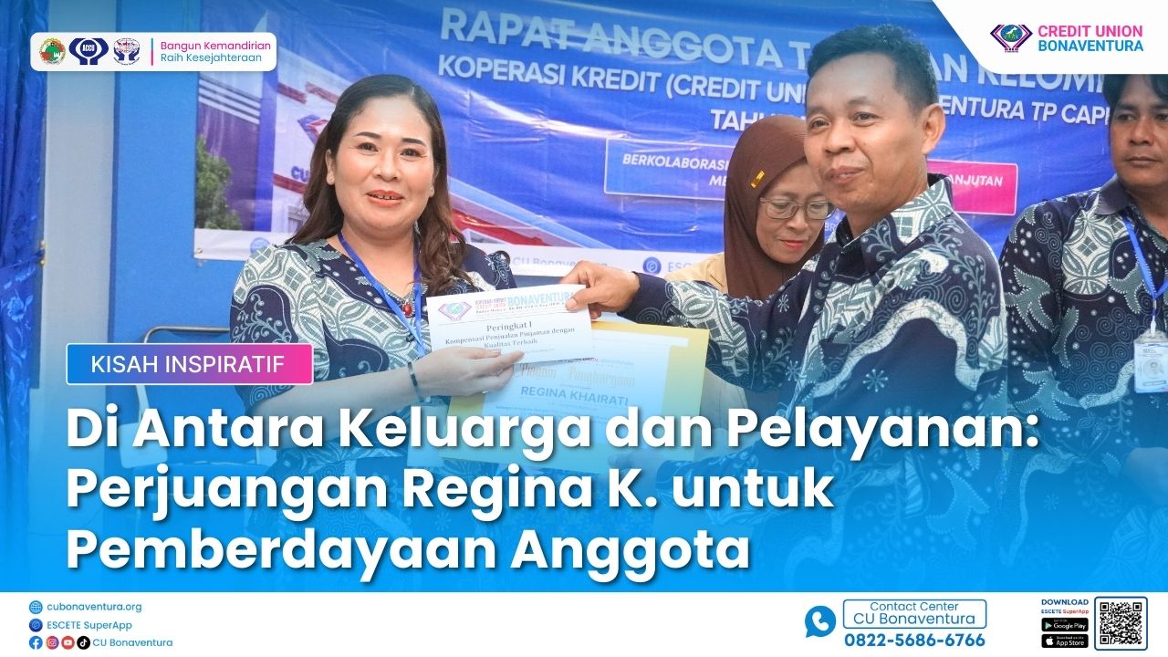 Perjalanan Regina K. di CU Bonaventura Tempat Pelayanan Capkala tidak dimulai dengan kemewahan. Ia bergabung sebagai Anggota Potensial yang meyakini bahwa kesejahteraan tidak dapat dicapai sendirian. Ia memahami bahwa CU adalah “kumpulan orang yang saling percaya”, dan ia memutuskan untuk menjadi jembatan dari kepercayaan tersebut.